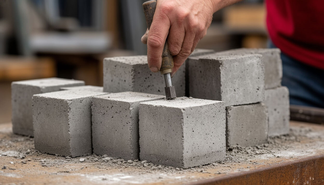 Испытание кубов бетона на прочность